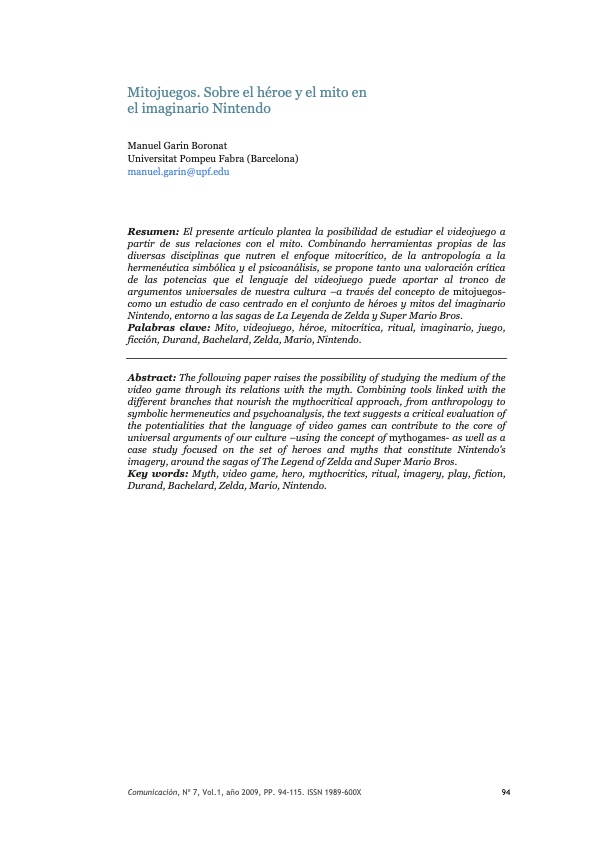 Mythogames. The Heroe and the Myth in Nintendo’s Imagery Article in Revista Comunicación, 2010 / in Spanish