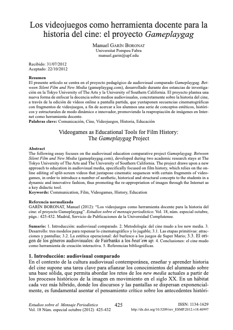 Video Games as Educational Tools for Film History Article in Estudios sobre el Mensaje Periodístico, 2012 / in Spanish