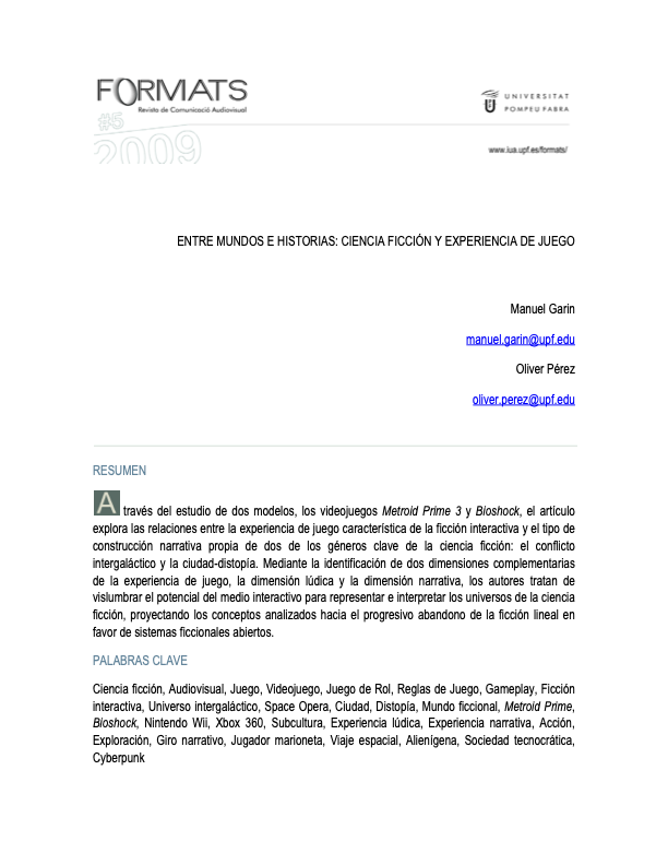 Between Games and Stories. Science-fiction and Gameplay Experience Article in Revista Formats, 2009 / in Eng, Spa, Cat
