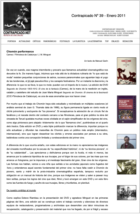 Segundo de Chomón: Performance Article in Revista Contrapicado Issue 39, 2011 / in Spanish