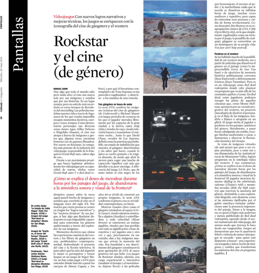 Rockstar y el cine (de género) Article in Cultura/s de La Vanguardia, 2014 / in Spanish