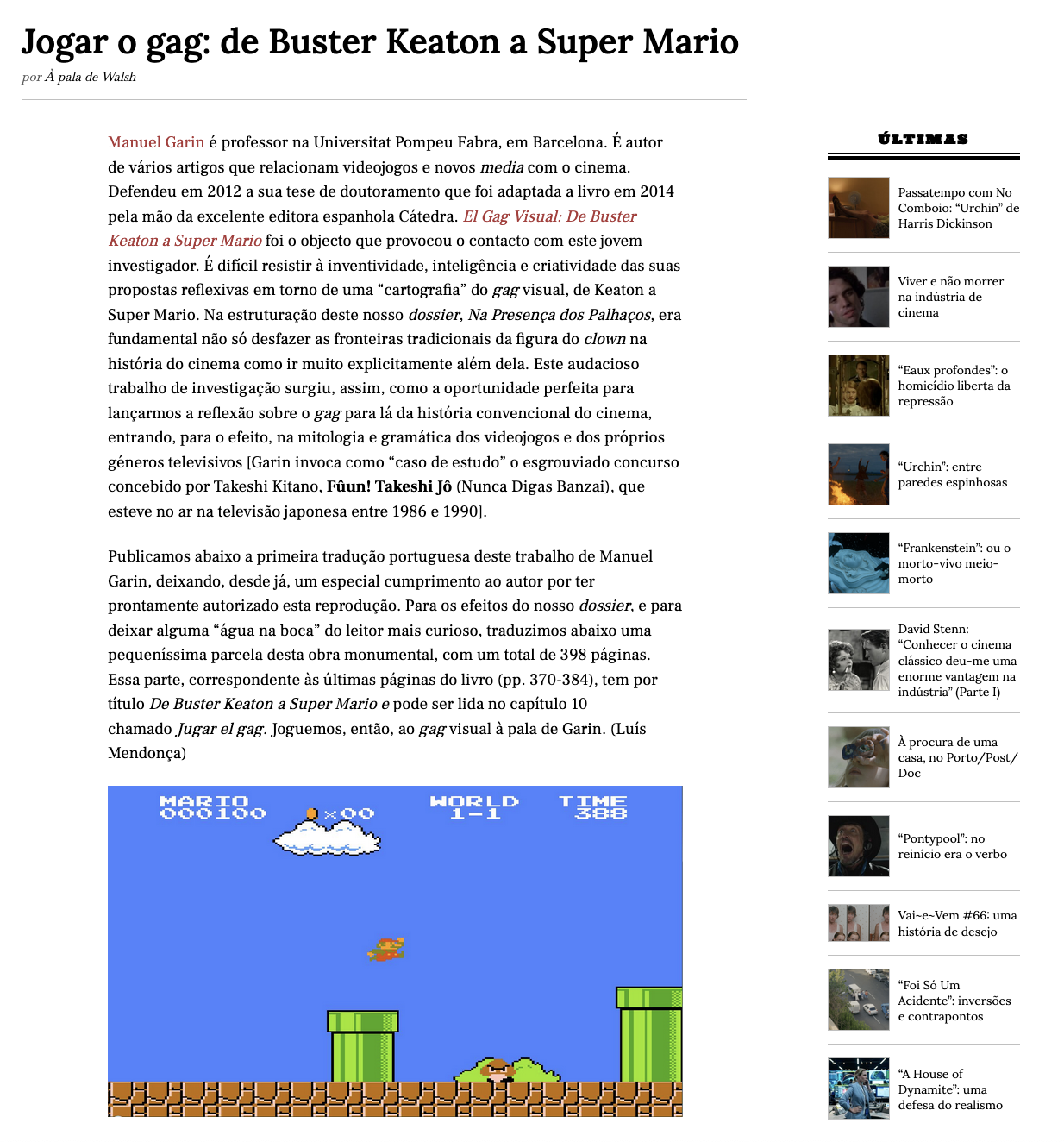 Jogar o gag: de Buster Keaton a Super Mario Article in À Pala de Walsh, 2015 / in Portuguese